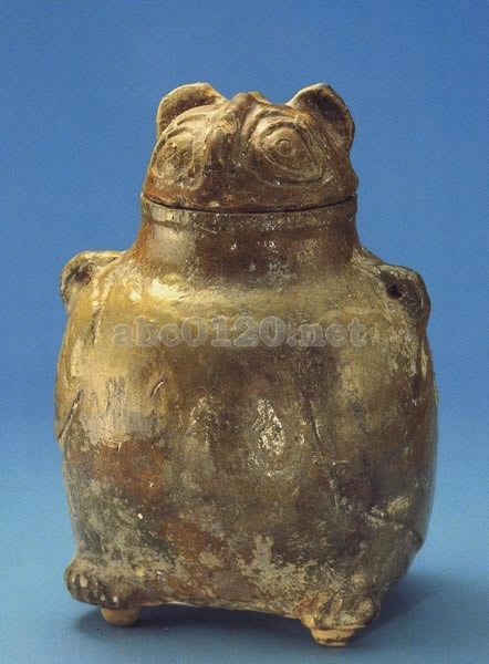 秦・漢・三国|青銅器|>黄釉鴞陶壺 |