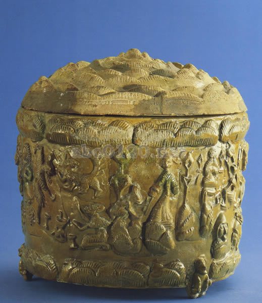 秦・漢・三国|陶磁器|>黄釉浮彫陶尊 |