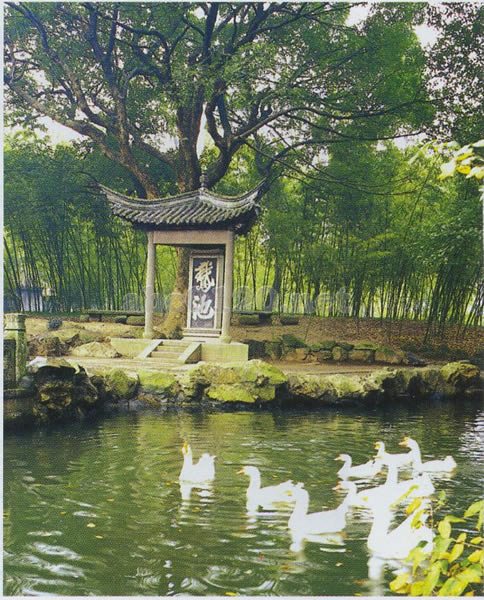 主なみどころは鵝池、鵝池碑、小蘭亭、曲水、流觴亭、御碑亭、右軍祠、書道博物館など。出所:中国の庭園