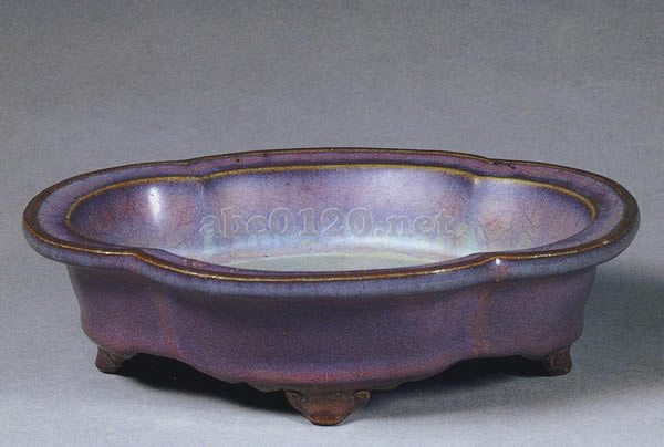 白濁した紫紅色の釉薬。まず銅紅釉を塗り、その上から全体に澱青釉を掛けて酸素の少ない状態で焼成したもの。出所:中国陶磁の至宝-デイヴィッド・コレクション 関連用語:
