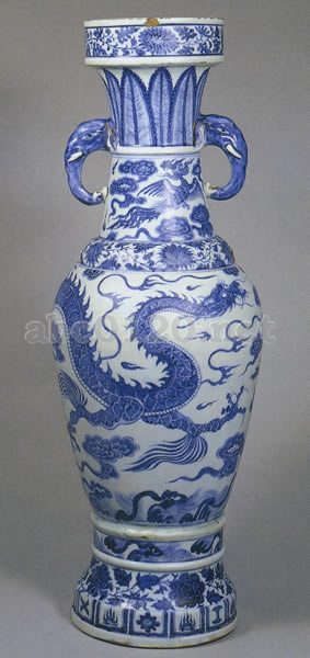日本では染付と呼び習わされることが多い。素地にコバルト顔料で絵付けをし、上から透明の釉楽をかける。元の時代から次第に景徳鎮窯で大量に生産されるようになり、明時代以降は海外輸出も飛躍的に増大した。コバルトは鮮やかな青色に発色することから中国では青花(チンホア)と呼ばれ、欧米では「ブルー・アンド・ホワイト」と称される。出所:中国陶磁の至宝-デイヴィッド・コレクション