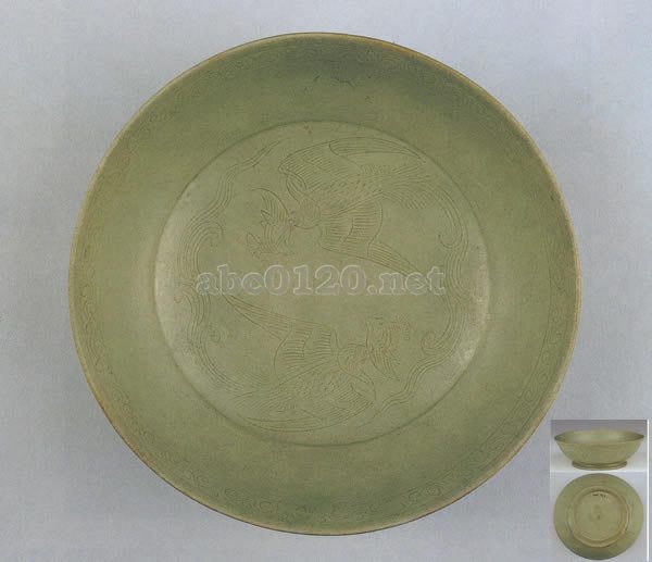 隋・唐・五代|陶磁器|>青磁劃花双鳳文盤 |
