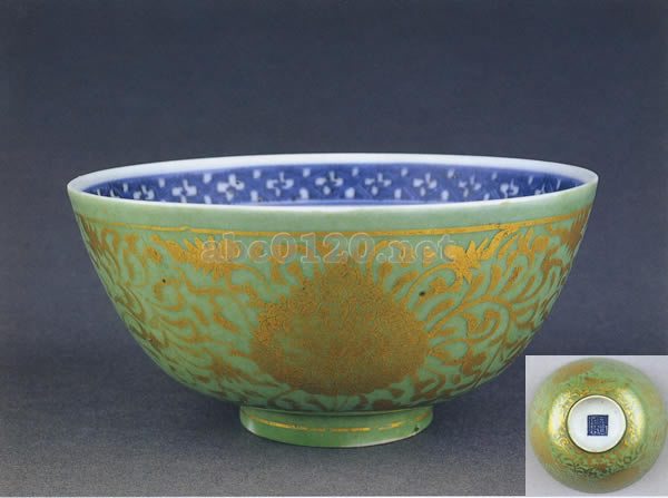 明・清|陶磁器|>緑地金彩宝相華唐草文碗 |