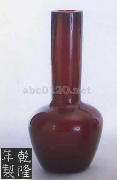 乾隆年製銘 1736~95年 高25.7cm 底はやや凹面で、まばらな気泡と不純物が至る所にある。「乾隆年製」銘が彫られている。出所:清朝のガラス1644-1911R・Hクラーグ・コレクションサントリー美術館 関連用語: