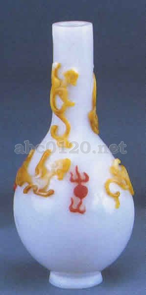 明・清|石器・ガラス|>白地紅黄色被竜文瓶 |
