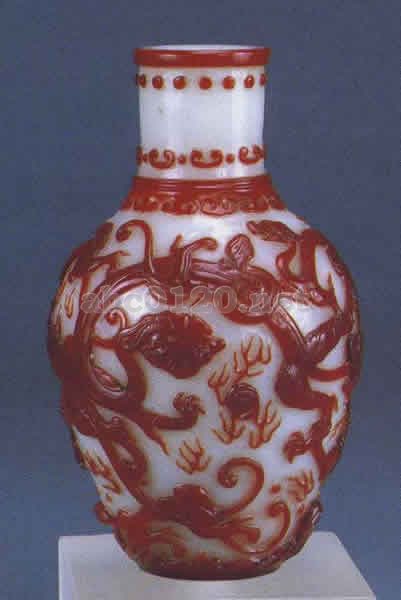 明・清|石器・ガラス|>白地紅被竜文瓶 |