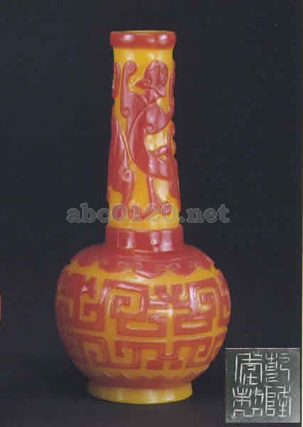 明・清|石器・ガラス|>黄地紅被竜文瓶 |