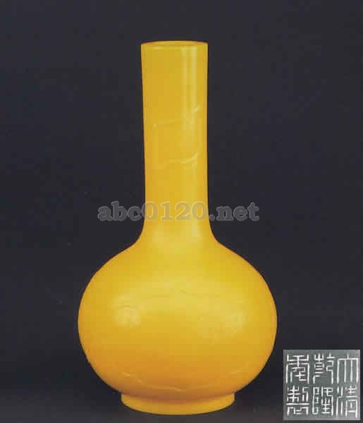 明・清|石器・ガラス|>黄色詩文入大瓶 |
