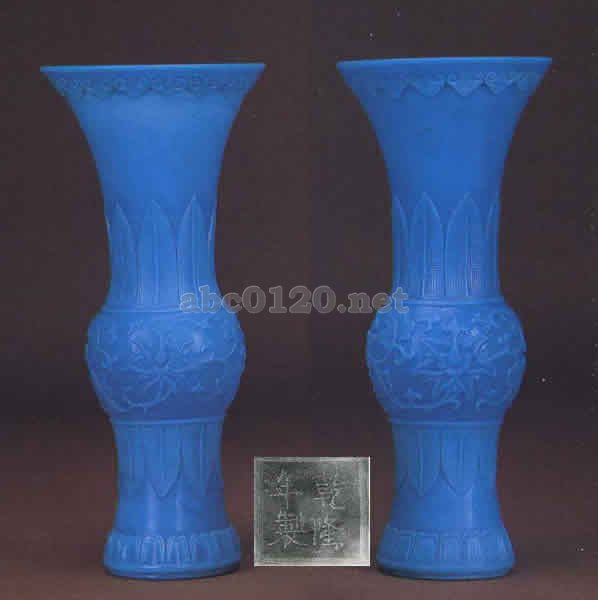 明・清|石器・ガラス|>青色宝相華文觚形大瓶 |