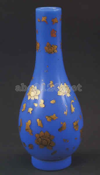 明・清|石器・ガラス|>青色金彩蓮文瓶 |