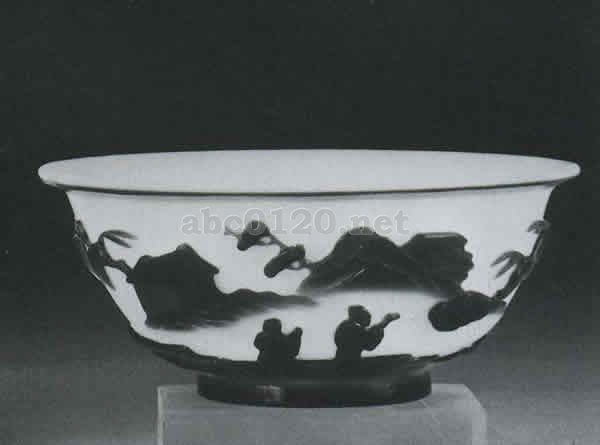 明・清|石器・ガラス|>白地紅被楼閣人物文鉢 |