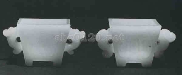 明・清|石器・ガラス|>白色寿字文角碗(一対) |