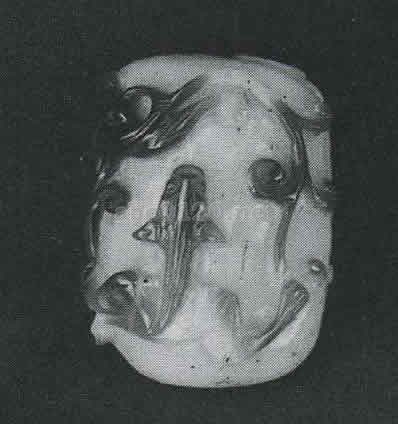 明・清|石器・ガラス|>黄地紅被竜文ペンダント |