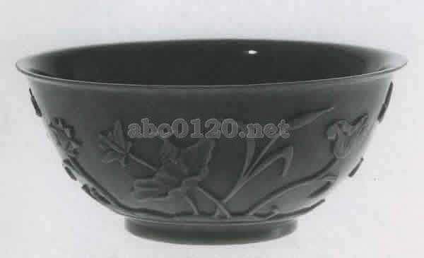 18世紀 径16.1cm 乳白の青色ガラス。器胎の内側は滑らかで、外側には研磨の跡が残されている。側面には梅に鳥・松・蓮に波・竹に白鷺が浮彫りにされている。出所:清朝のガラス1644-1911R・Hクラーグ・コレクションサントリー美術館 関連用語: