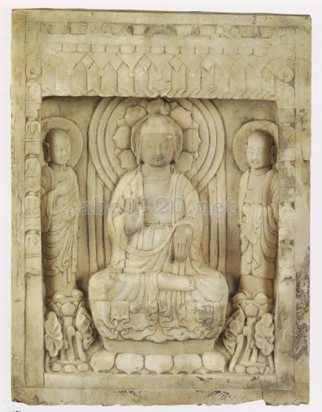 晋・南北朝|彫刻・書画|>如来坐像・二弟子立像龕 |