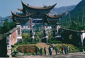 頂に登って眺めれば、東には日の出が、西には?海と蒼山が、北には玉龍雪山が、南には祥雲と賞される雲海を見ることができる。明代の大旅行家徐霞客は“これは鶏山に一番でない、実は中国一番だ”と言った。大理市内各バスターミナルから鶏足山への直行バスが出ている。
