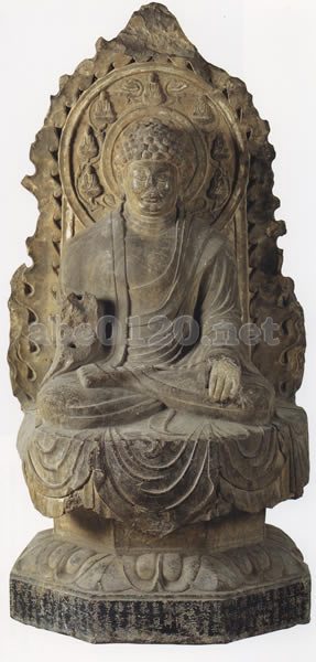 唐時代(六一八~九〇七年)の彫刻は、則天武后(在位六九〇~七〇五年)期以後、開元・天宝年間(七一三~七五六年)に新たな展開を示すが、その一つの方向が、本像にみられるような量感を強調した作風であり、天宝年間には、肥満ともいえるほどの肉身表現も見られるようになる。本像は、表情や光背の意匠などに地域的な要素が認められるものの、当時の作風の傾向をよく反映した遺例といえよう。出所:唐の女帝・則天武后とその時代展1998