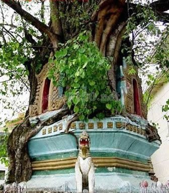 樹包塔-徳宏藤は木を巻くことがあるが、木が塔を巻くことは聞いたことない。芒市の不思議な木は塔を巻く自然奇観がある。タイ族の史料の記載によると、清代の乾隆五十三年(紀元1778年)芒市の第十七代土司の放愈著は戦争の勝利を記念するためにこの塔を建てて、すでに約二百年の歴史がある。この塔はレンガで作り、高さ約10m、八角形、仏壇に仏像を供えている。現在、塔頂の木は高さ約30m、木蔭の面積が約1000m2ある。長い時間経つうちに、レンガの塔身は裂け目を出し、裂け目にほこりがだんだん積み重なっていた。ある日、風或いは鳥が一粒ガジュマルの種を裂け目に持って来た。春の雨が降って、種は根をおろして芽を出す。この間に塔が木を巻くという。ガジュマルがますます大きくなって来て、古塔はだんだんガジュマルに巻かれて、木が塔を巻く奇観になった。