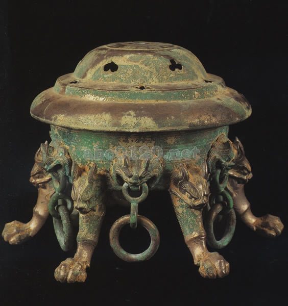 この種の香炉は、同時代の類品が少なからず知られ、当時の香炉の一典型であったと考えられるが、獣の造形には独特のものがあり、同類の金工品の系統を考えるうえで興味深い。出所:唐の女帝・則天武后とその時代展1998