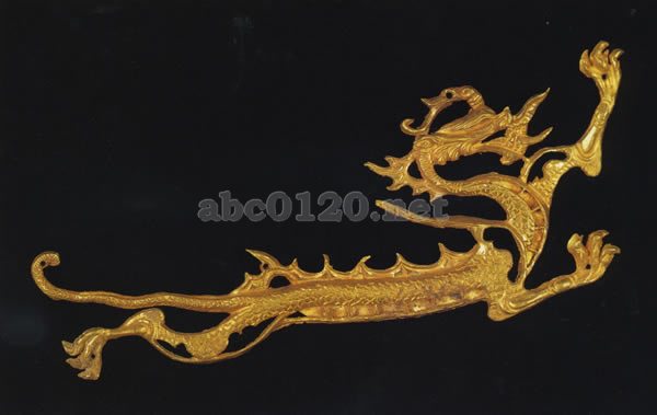 鳳凰、龍、鴻(大形の雁)の姿は生動感に富み、樹木も枝がうねりながら伸びる様が巧みに表現されている。同じ地点から出土し、同様の作りになることからすると、本来、何らかの装飾として一緒に用いられたのであろう。鳳凰は、同形同大のものがこの他にもう一点、同所から出土している。出所:唐の女帝・則天武后とその時代展1998