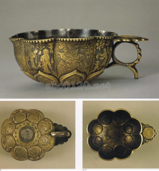 仕女狩猟文八曲把杯 2009年1月29日更新
