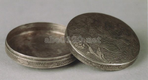 隋・唐・五代|金銀・玉器|>鴛鴦唐草文盒 |