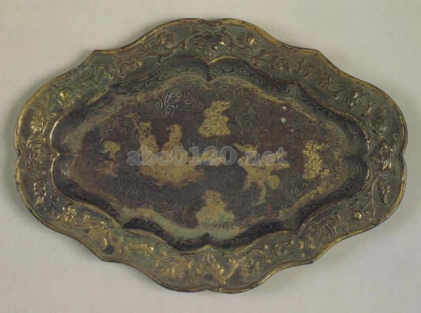 隋・唐・五代|青銅器|>人物弾琴鶴文四稜盤 |