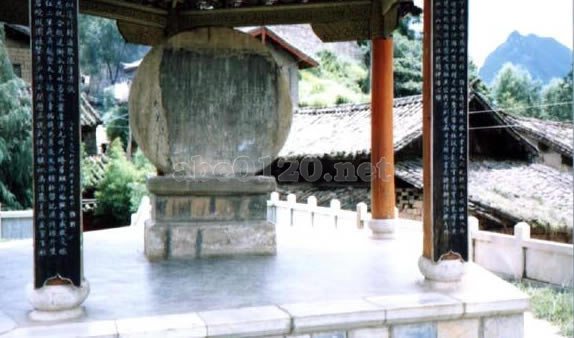 石鼓は、長江の上流で有名な小鎮で、鎮の中に漢白玉で彫刻した鼓の形のような石碑があるので、名付けられた。石碑の直径は1.5m、厚さ0.7m、碑亭で保護している。伝説によれば、三国の時代に諸葛亮は石鼓の近くで“五月に瀘江を渡る”、南中を平定した後、各部落を鎮めるためにこの石碑を建てた。鼓の側面に裂け目があり、民間の伝説によれば、世道が不穏で鼓が自分で裂け、太平の世石鼓鎮-麗江に自分で閉じる。1936年に紅軍長征もここから川を渡って北上した。