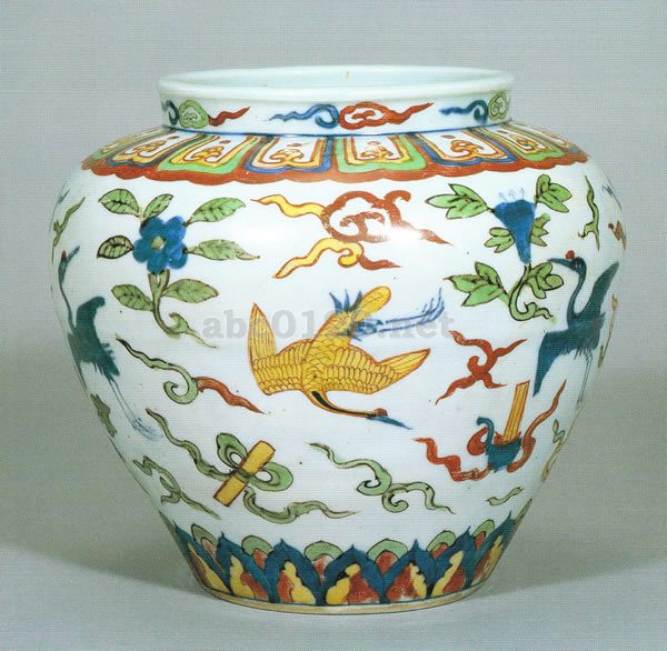 「大明嘉靖年製」銘 景徳鎮官窯 明(嘉靖)・十六世紀 高19.3 口径13.3 胴径21.3 出所:0121特別展中国の陶器1994東京国立博物館 関連用語:
