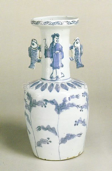 古染付・高砂手且 景徳鎮民窯 明末・十七世紀 高26.5 口径9.5 底径10.0 京都・北村美術館出所:0121特別展中国の陶器1994東京国立博物館 関連用語: