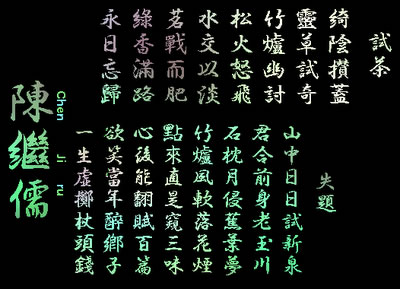 学は仲醇、眉公など。江蘇省華亭の人。早くから詩文、書などに才能を発揮し、同郷の三年先輩で親友の董其昌と並び称される存在であったが、二十九歳で隠居生活に入った。博学で画、篆刻も得意とし、特に北宋時代の蘇軾の書を好んで学んだといわれるが、残された彼の書には董其昌の書風も垣間見られる。収蔵にも富んだが、彼が専心して集めたのはやはり蘇軾の書で、それらをまとめた「晩香堂蘇帖」が知られている。(書の鑑賞用語)出所:書の至宝-日本と中国2006