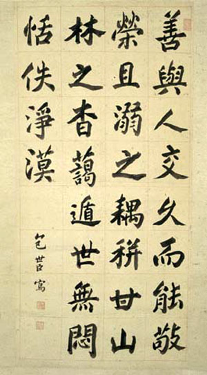 字は慎伯、号は倦翁など。安徽省涅県の人。書は二王、孫過庭、顔真卿などを学び、重厚な書風に至った。また、『南北書激論』などで碑学を推奨した阮元に追随し、碑学尊重の論をさらに推し進めた『芸舟双揖』を著わし、碑学の地位を確実なものにした。さらに逆入平出の用筆法を提唱したのも彼で、呉煕載、趙之謙、何紹基など、彼の論に大きく感化された大家は数多い。(書の鑑賞用語)出所:書の至宝-日本と中国2006