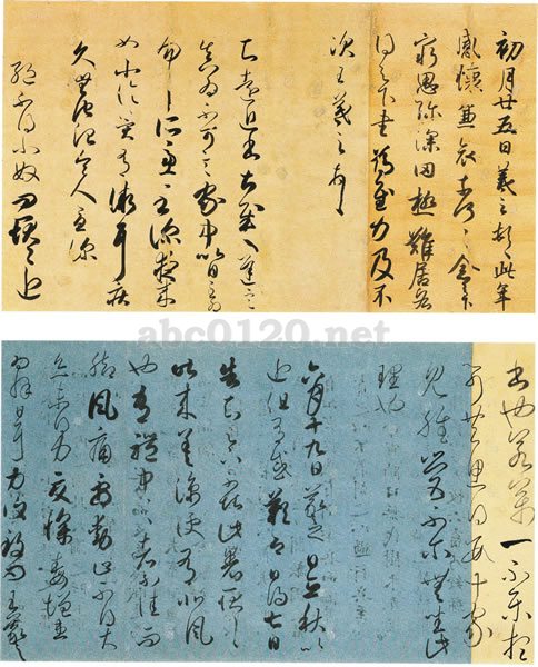 「秋萩帖」の名で広く知られる本巻は、中国から将来された『淮南子』(淮南鴻烈兵略間詰第廿)を書写した紙背を利用して、和歌を書写し、その後に王羲之(三〇三―三六一)の尺牘十一通の臨書を収める書巻である。ただし冒頭の和歌二首分の裏に『淮南子』は書写されていない。すなわち現状の表面には①第一紙に和歌二首が書かれ、②第二紙以下に和歌四十六首が続き、③巻末に王羲之の尺牘の臨書を収めている。そして裏面の②③に相当する部分に『淮南子』が書写されているのである。第一首の和歌が「あきはぎの」で始まるためにこの帖名がある。③の巻末には、都合十一種の王羲之の尺牘を臨書している。その中の第八通は、『淳化法 帖』巻七の「得丹楊書帖」、第九通は「東書堂帖』所収、第十一通は『翰香館法書』巻四所収になるもので、第十連は『宣和書譜」を十五に記載する「高枕帖」に相当すると考えられている。これら以外の尺牘は、歴代の著録や法帖にみられない。正倉院の「東大寺献物帳」には、奈良時代に中国から将来された種々の搨摸本が記載されている。書写を藤原行成(九七二―一〇二七)とする信憑性はともかく、この臨書もそうした搨摸本に基づくものなのであろう。中国にもみられない王羲之書跡の資料として、きわめて貴重なものである。