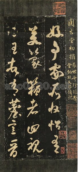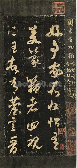 群玉堂法帖は、もと閲古堂法帖と称し、寧宗皇帝(在位一一九五~一二二四)の宰相であった韓侂冑(?-一二○七)が、家蔵の書跡を刻した法帖である。韓侂冑は開禧(一二〇五-○七)の末に、罪に坐して誅せられた。原石は嘉定元年(一二〇八)、秘書省の群玉堂に置かれ、群玉堂帖と改名された。摸勒は名手を謳われた向若水である。
