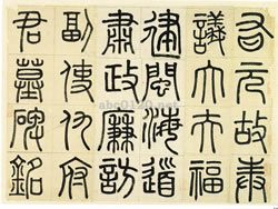三門記巻には書写年月を明記しないが、碑文中の記載から三清殿記の後に書かれたことが知られる。さらに趙孟?が巻末に記す官銜から、本作は大徳六年以降至大二年の間、趙の四十九歳から五十六歳までの書写と考えられる。しかし両者の書風は比較的近似しており、三門記の書写時期も、大徳六年を大きく降るものではないと思われる。紙本に烏糸欄を施し、巻頭には篆観に相当する八文字を端整な篆書で記す。本文は各行八字ずつ、一点一画をゆるがせにしない稜角をそばだてた楷書で書き進めている。 出所:書の至宝-日本と中国2006