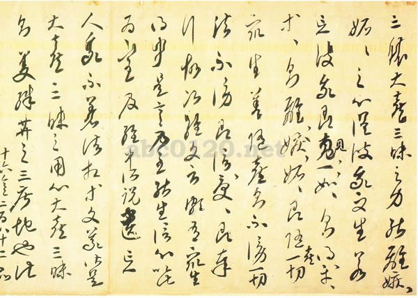 その書は、たとえば奈良博本では、今しがた書かれたかと思われるほどに、墨色は生々しく潤いをたたえる。色は均一の黒ではなく、空に架かる虹のように行を追うごとに少しずつ変化してゆくため、その筆勢と相俟って大いに精彩に富む。墨色に宿る精彩を、まざまざと実感できる数少ない名品として特筆されよう。また、個々の文字が、たとえば球体のようなイメージで紙面から立ち上がるかにみえることがある。その理由として、円運動を多用した草書体で文字が書かれる傾向に加え、起筆と収筆の角度が垂直かそれに近い関係で文字が構成される例が多いことが考えられる。筆勢・墨色・文字構成等がそれぞれ意味をもって統合され、文意と一体化したと感じさせる力を秘めているところに、空海の書の真骨頂を思わせる。伝存する空海の書のなかても屈指の名品である。出所:書の至宝-日本と中国2006