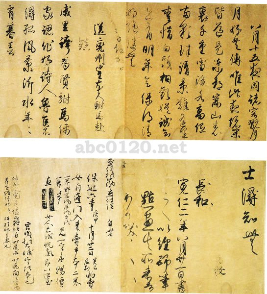 『白氏文集』は平安貴族に愛好され、必須の教養書として尊重された。行成は小野道風(八九四-九六六)、藤原佐理(九四四-九九八)とならび、「三跡」と称される。白、淡茶、赤紫などに染め継がれた料紙に草書まじりの行書で記される。巻末に行成自身の奥書と保延六年(一一四〇)に子孫定信(生没年未詳)が購入した旨の跋がある。また紙の継ぎ目に伏見天皇(一二六五~一三一七)の花押が確認されることから、本作品が後世、能書で知られた天皇遺愛の品であったことが知られる。その筆致は格調高く、繊細にして優美さを極めた行成の傑作といえ、和様の書の完成形をここに見出すことができよう。出所:書の至宝-日本と中国2006