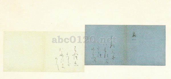 の部立を確認することができる貴重なものである。これは、薄藍の料紙一枚に部立と『古今和歌集』巻第十二所収の和歌の上旬を、色の料紙一枚に下句をそれぞれ書写した部分である。繊細で洗練された連綿による筆線、