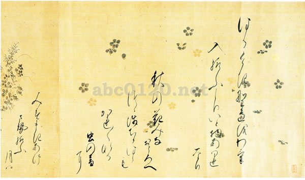 三条西実隆(一四五五―一五三七)が『源氏物語』の「賢木」と「槿」の巻の一部を抄写した手本。本文は十四紙と奥書の一紙で構成。奥書から小作山が大永八年(一五二八)に伊福忠勝の依頼を受けて突降が書したと分かる。実隆の日記『実隆公記』の大永八年四月二十二日条に「伊福新十郎藤原忠勝始而来、太刀一腰、百疋献之、源氏詞等書遣之礼也」、同二十四日条に「伊福所望源氏詞奥書遣之」とあることから本作品の奥書と一致する。実際は伊福より謝礼として太刀一腰と百疋(銭千文)を受けとっている。実隆は室町時代後期の廷臣で、有職故実を修め、和漢の字問興隆に功績があり、当時一級の文化人として著名。和歌にも明るく、とくに『源氏物語』に代表される和学古典の研究にもつとめた。後年出家して法名堯空、逍遙院と号した。能書としても知られ、その流は三条流(逍遙院流)と呼ばれる。本作品はこうした実隆の古典文化への姿勢をうかがわせる名品といえる。出所:書の至宝-日本と中国2006