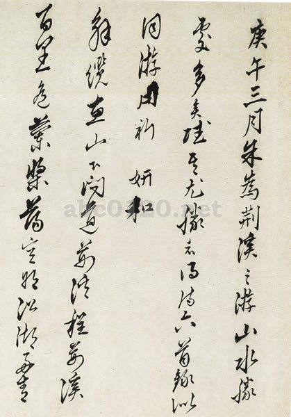この巻子は明の正徳五年、王鏊(一四五〇―一五二四)が六十歳のときに書いた作品である。晋唐の遺風を得た清新さと、瀟散な風格があり、人の眉宇を打つかのようなその逸気は、当時の書壇の好尚とは異なるものがある。出所:書の至宝-日本と中国2006
