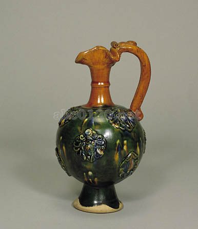 隋・唐・五代|陶磁器|>三彩貼花宝相華文水注 |