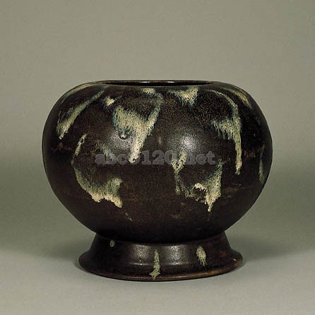 黒釉陶は、後漢時代以降さまざまな発展を遂げていくが、中唐から晩唐にかけて黒釉に失透性の青白釉をかけ合わせる装飾的な技法が開発された。このような釉の二重がけによる流動感の表現は、唐三彩にも見られるところで、唐時代の美意識の一端がうかがえる。また、青味を帯びる釉調が、宋時代の鈞窯のそれと似ている点が興味をひく。近年の発掘調査により、陝西省耀州窯、河南省郊県黄道窯、禹県魯山段店窯などで、同種の陶片が発見されている。