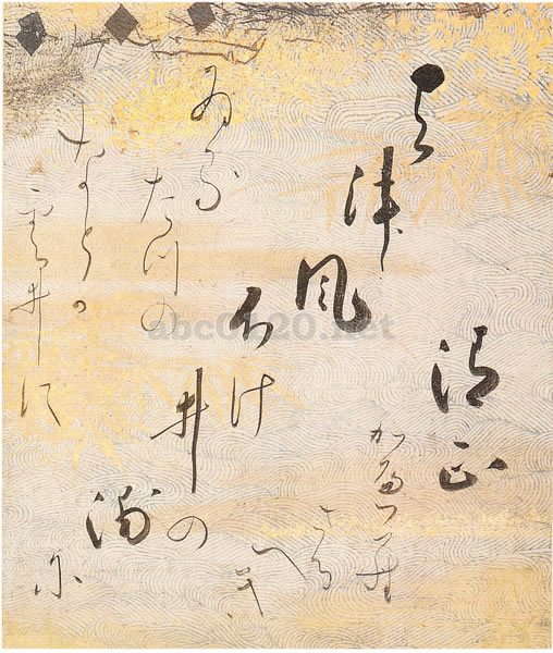松花堂昭乗(一五八四-一六三九)は、青蓮院門跡の尊朝法親王について御家流を学び、さらに弘法大師の書風を渇望し、整斉で温雅な書風で知られる。晩年になるにつれて、たくさんの作品を残しているが、両家でもあった昭乗の運筆は巧妙で、よく洗練されている。昭乗は後世、近衛信尹(一五六五―一六一四)・本阿弥光悦(一九五八~一六三七)とともに「寛永の三筆」の一人として称される。その書風には、近衛信尹のスピード感がある豪放な味わいや、本阿弥光悦の装飾的で変化にとんだ書風に比べると、やや個性に欠けるところがある。しかし、江戸時代には、瀟洒淡白を好んだ江戸の人々の間で流行し、その書跡は手本として刊行され、松花堂流の名で多くの人に恭われている。出所:書の至宝-日本と中国2006