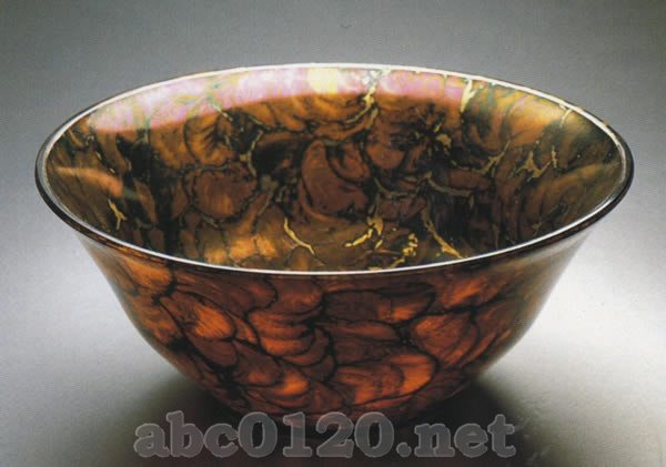 この鉢は試作品である。この作品で,彩色の教師であったヨゼフ・ベニシュ(1881ー1936)は,還元着彩による斑文の装飾ガラスの可能性を試したのである。出所:『ボヘミアのアールヌーヴォーグラス展』 Bohemian Art Nouveau Glass