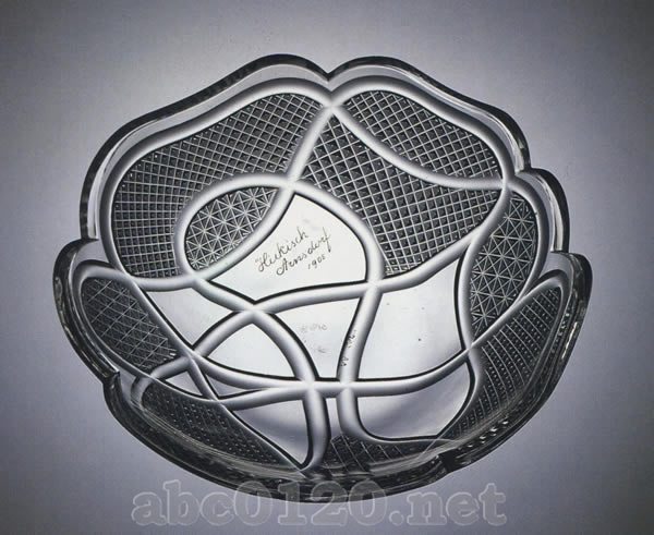 1905年 ヒキッシュ ボル近郊のアルヌルトヴィッェ 高さ6.7cm ガラス美術館, ノヴィー・ボル 無色ガラス,カット。出所:『ボヘミアのアールヌーヴォーグラス展』 Bohemian Art Nouveau Glass