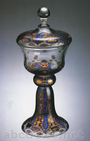 無色ガラス,黒のドローイングによる装飾,透明色エナメル彩,金彩