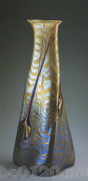 この器形は,クリストファー・ドレッサーが1885年頃,グラスゴーのガラス工場,ジェームス・クーパー社("クルーサ・ガラス″)のためにデザインしたものとほぼ同一である。このガラス工房は,ロンドンのマックス・エマニュエル商会を通してドレッサーの作品を得ることとなった。そこは,1898年と99年にクロスターミューレで制作された,ドレッサーの他のデザインを持っていた。1900年,ガラス工房はその生産のために彼のデザインのほとんどを買い取っている。出所:『ボヘミアのアールヌーヴォーグラス展』Bohemian Art