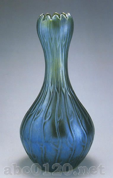形:1903-04年 装飾:Neptun 高さ28cm シュマヴァ美術館, カシュペルスケー・ホリー 緑のガラス,わずかなレリーフ状の装飾,虹彩。出所:『ボヘミアのアールヌーヴォーグラス展』Bohemian Art Nouveau Glass