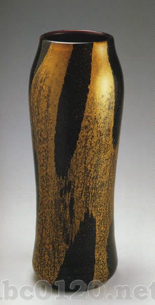 形と装飾:1904年,manuf.no.1610; rubin Ophir 高さ22cm シュマヴァ美術館.カシュペルスケー・ホリー ルビー・レッドのガラス,雲母の粉飾.黄色のトパーズの被せガラス。出所:『ボヘミアのアールヌーヴォーグラス展』Bohemian Art Nouveau Glass