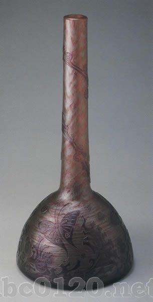 1909年から10年にかけてウィーンでひらかれたオーストリア美術・工芸のためにデザインされた作品。ベッケルトの様式化された動物的モチーフの独特な作例。出所:『ボヘミアのアールヌーヴォーグラス展』Bohemian Art